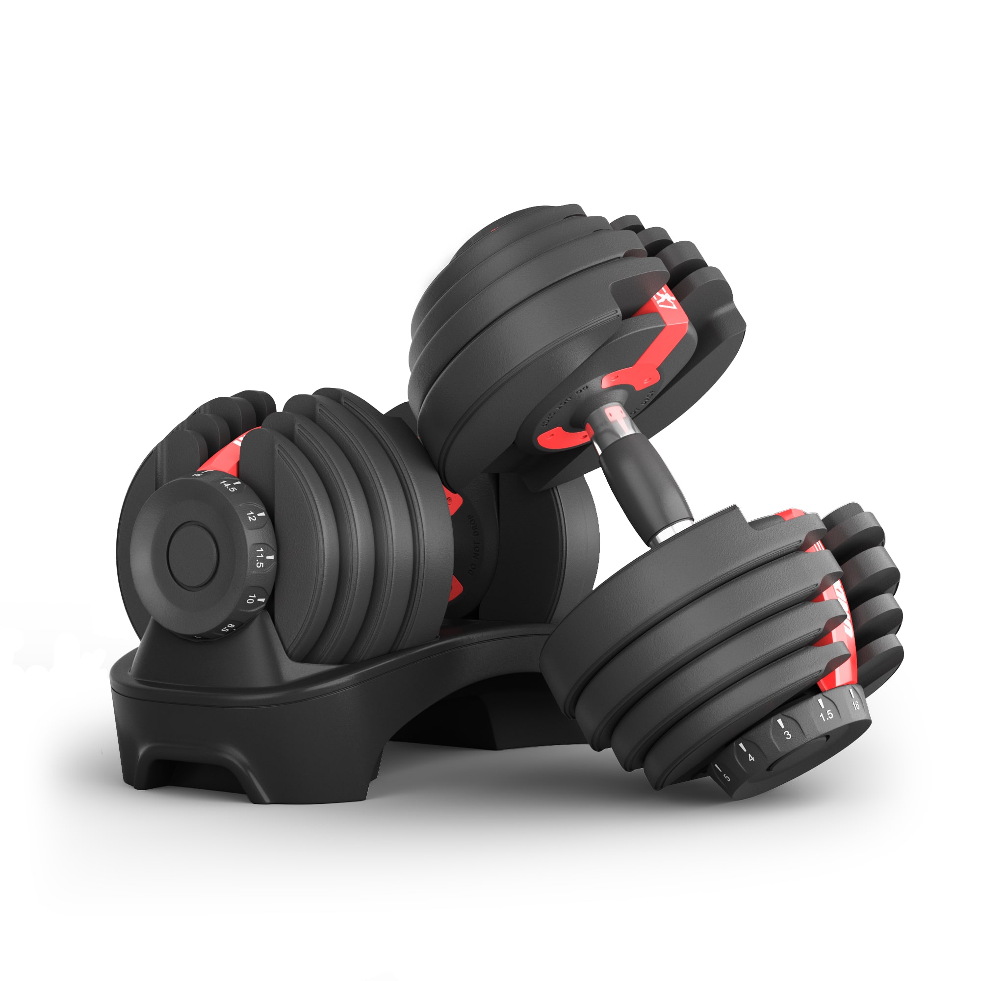 Регулировка шага нагрузки: 1,5кг - 3кг - 4кг - 5кг - 6кг - 8кг - 9кг - 10кг - 11,5кг - 12кг - 14,5кг - 16кг. Размеры гантели 45,5 х 17 х 16 см.