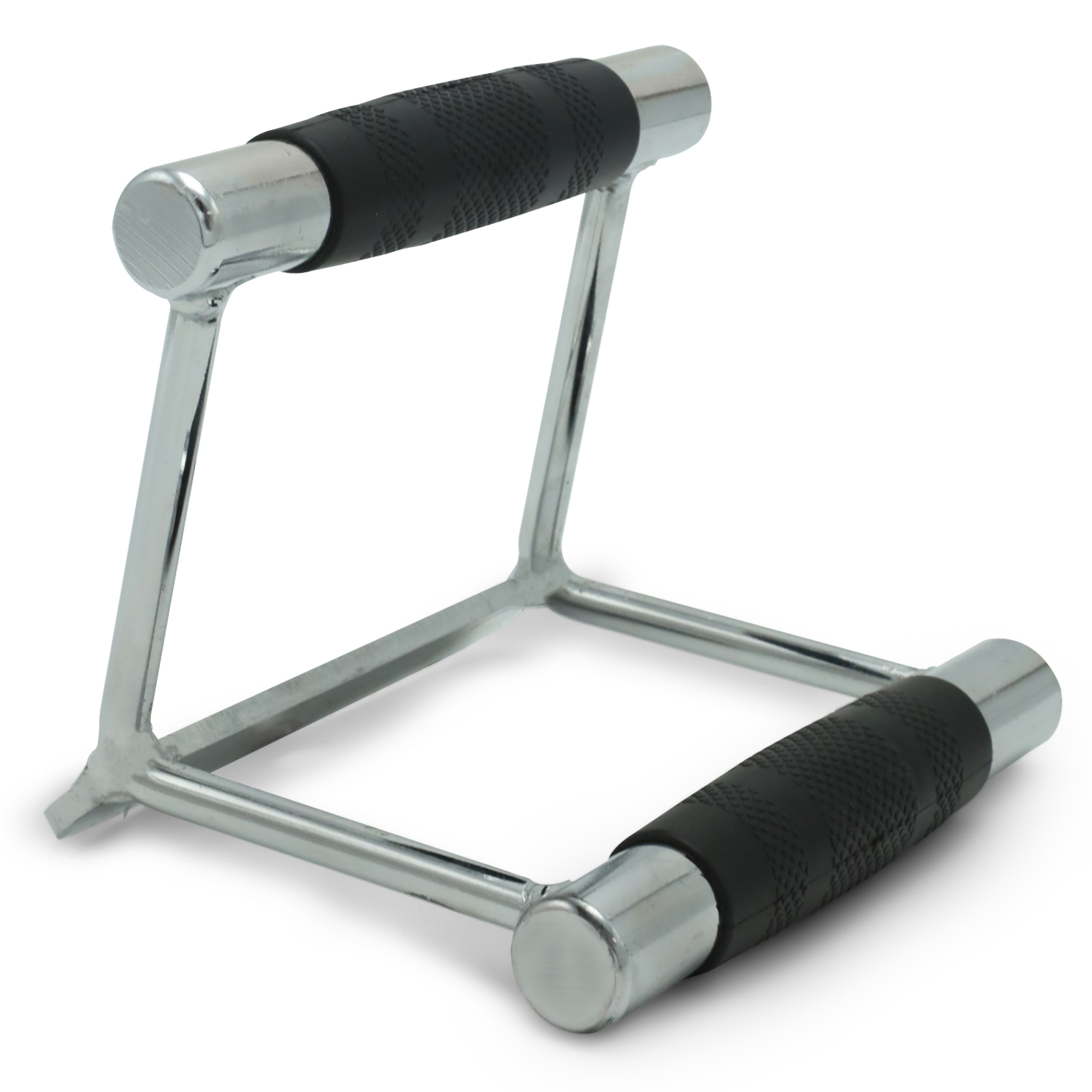Специально разработанная эргономичная форма рукоятки идеально распределяет нагрузку на руки и предотвращает скольжение во время тренировок. Выполненная из хромированной стали, рукоять гарантирует долгий срок службы без потери качества. Резиновое рифленое покрытие места хвата обеспечивает надежное сцепление и комфорт во время тренировки, а также нескользящая поверхность позволяет избежать травм. Ручка подходит для любого блочного тренажера.