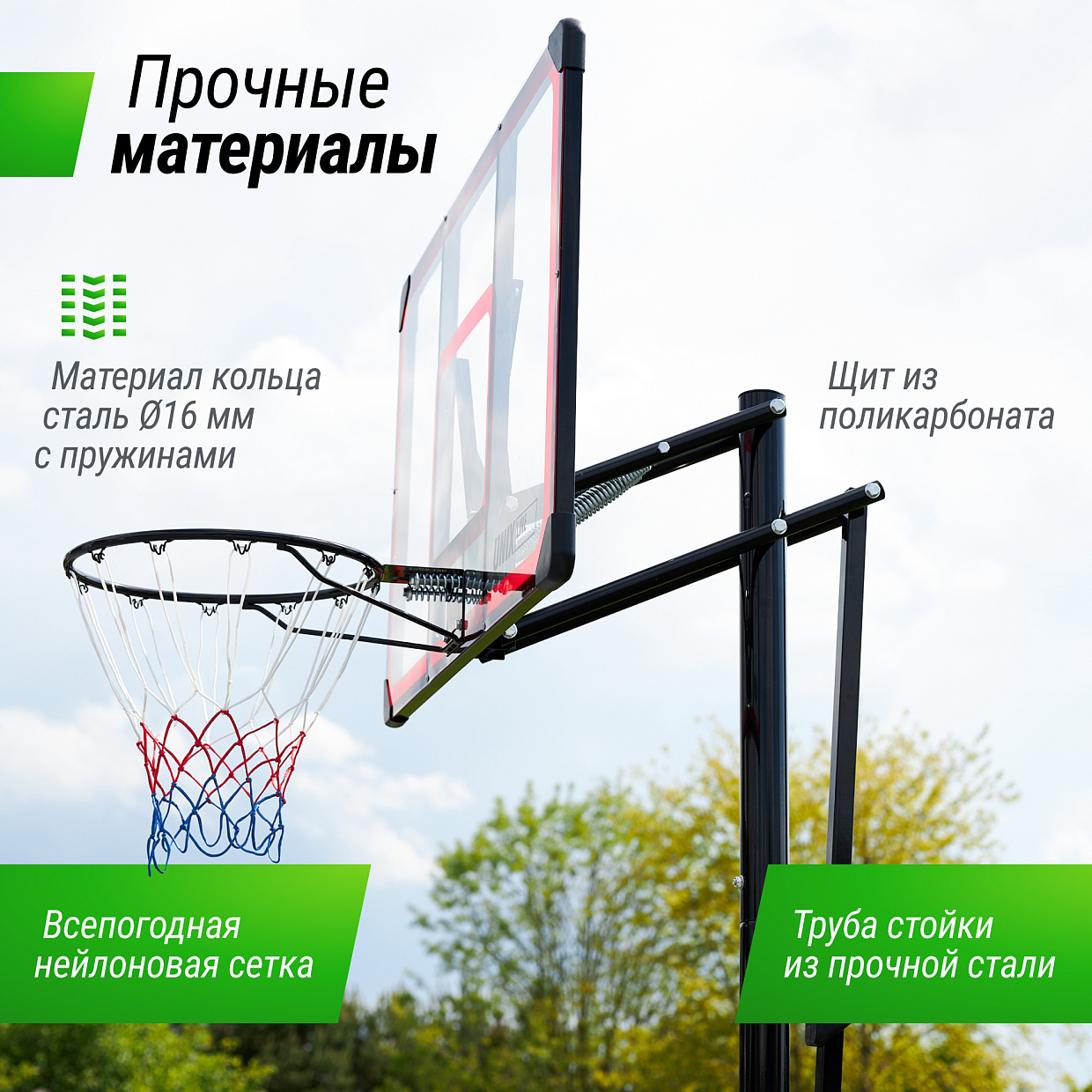 Баскетбольная стойка с кольцом станет отличным развлечением для дружеских матчей на природе, а также полезным инвентарем для тренировок!