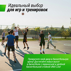 Баскетбольная стойка UNIX Line производится из стали с защитным полимерным покрытием. Собирается как конструктор по частям, которые фиксируются замковым соединением. Сооружение используется как в закрытых помещениях, так и для уличных соревнований. Команда может перевозить свое оборудование на другие площадки - стойки разбираются, складываются и легко переносятся. Мобильную баскетбольную стойку можно использовать в помещении и на улице. Данная система не предназначена для детей младше 3 лет.Баскетбольная стойка с кольцом станет отличным развлечением для дружеских матчей на природе, а также полезным инвентарем для тренировок!