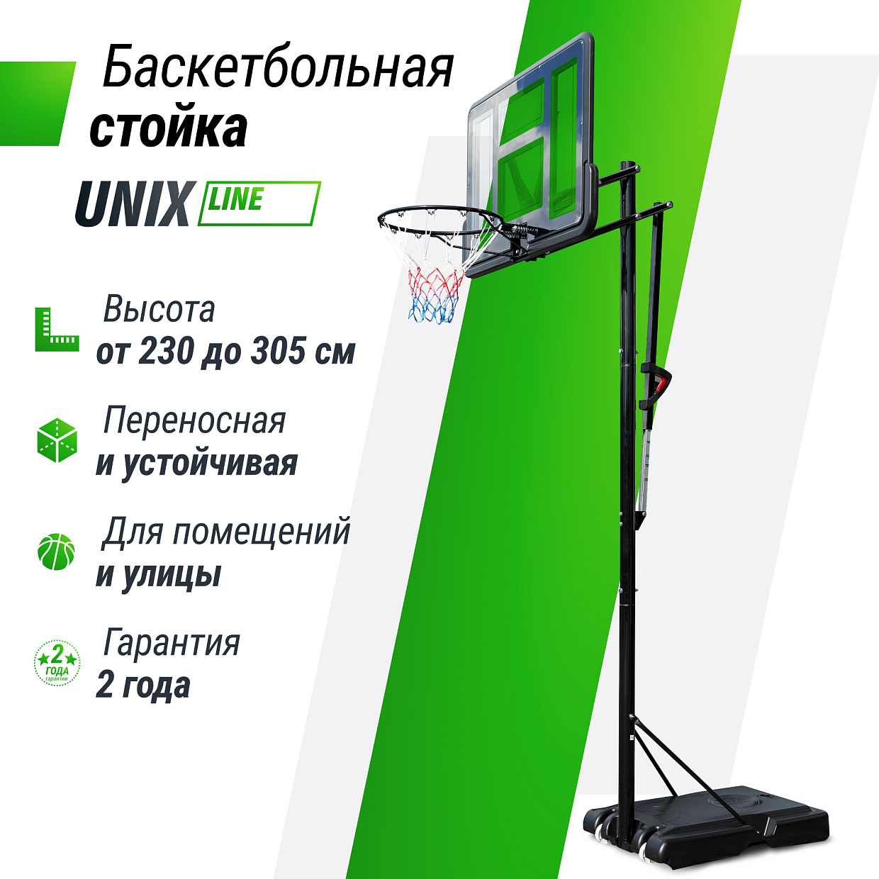 Баскетбольная стойка UNIX Line производится из стали с защитным полимерным покрытием. Собирается как конструктор по частям, которые фиксируются замковым соединением. Сооружение используется как в закрытых помещениях, так и для уличных соревнований. Команда может перевозить свое оборудование на другие площадки - стойки разбираются, складываются и легко переносятся. Мобильную баскетбольную стойку можно использовать в помещении и на улице. Данная система не предназначена для детей младше 3 лет.Баскетбольная стойка с кольцом станет отличным развлечением для дружеских матчей на природе, а также полезным инвентарем для тренировок!