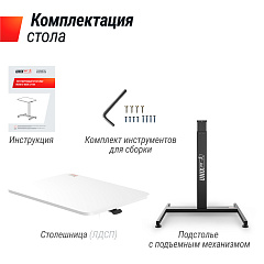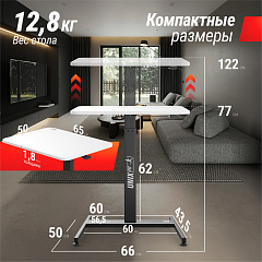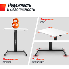 Столешница изготовлена из высококачественного материала ЛДСП, что обеспечивает его прочность. Мощная рама из стали 80х40 мм позволят спокойно разместить на столе необходимые устройства. Устойчивые ножки обезопасят любого пользователя от падения стола. Плавный и практически бесшумный мотор, он поможет отрегулировать столешницу по высоте от 72 см до 120 см от пола.