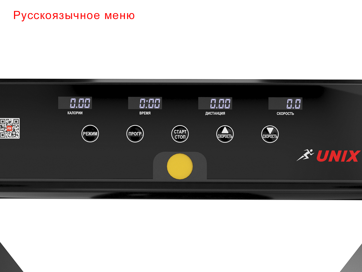 Устройство обладает интуитивно понятной панелью управления, которая отображает на себе такие параметры как скорость, дистанция бега, потраченные калории, время тренировки, пульс.