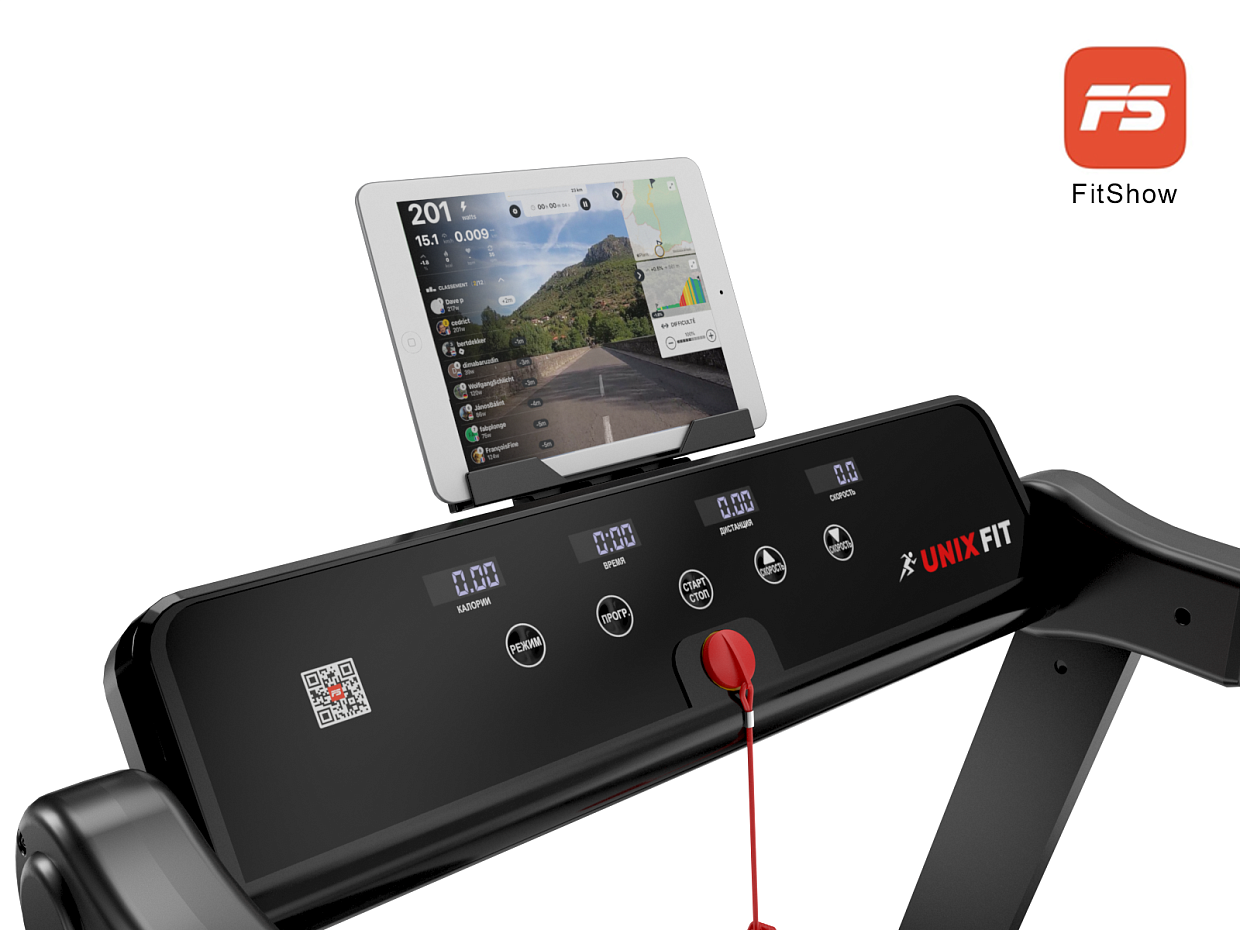 *Также, имеется возможность синхронизации беговой дорожки с мобильным устройством при помощи приложений FitShow, Kinomap, ZWIFT, SPAX, FITLOG (подключение через Bluetooth) с возможностью управления беговой дорожкой и сохранения тренировок.