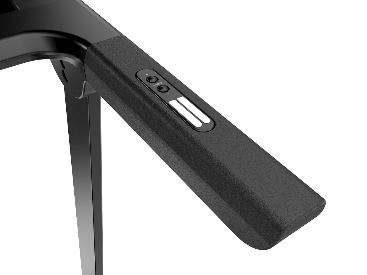 Дорожка обладает инновационной функцией “NO TOUCH CONTROL”, которая с помощью инфракрасного датчика позволяет пользователю бесконтактно изменять скорость во время тренировки, а так же установить нужный параметр целевой тренировки (расстояние, калории и время тренировки).