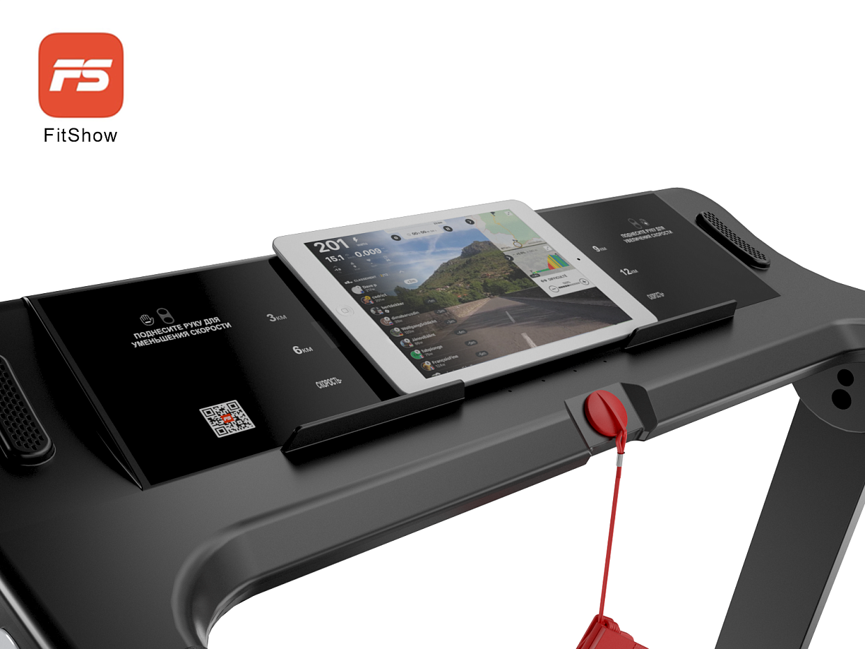*Также, имеется возможность синхронизации беговой дорожки с мобильным устройством при помощи приложений FitShow (подключение через Bluetooth) с возможностью управления беговой дорожкой и сохранения тренировок.