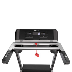Устройство обладает интуитивно понятной консолью на русском языке. Панель управления отображает такие параметры как скорость, пройденная дистанция, потраченные калории, время тренировки, пульс и угол наклона. На поручнях расположены датчики пульса, которые помогут отследить сердечный ритм во время тренировки и кнопки изменения скорости и угла наклона.