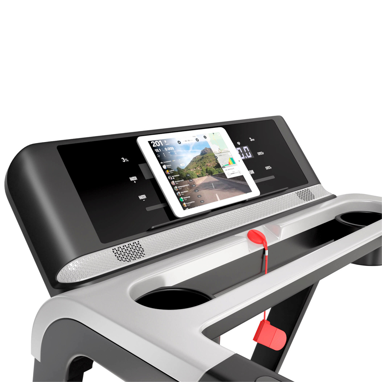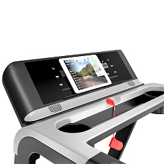 Для того, чтобы тренировка прошла легко, с помощью Bluetooth можно подключить ваш смартфон или планшет и прослушивать любимые треки или подкасты прямо во время занятий. Кроме того, у дорожки есть специальная подставка для вашего девайса. Бутылочку с водой удобно расположить в одном из двух карманов по краям консоли.