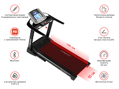 Беговая дорожка имеет опцию воспроизведения музыки (4 kW х 2 динамика) с подключением внешних устройств через Bluetooth 4.0.