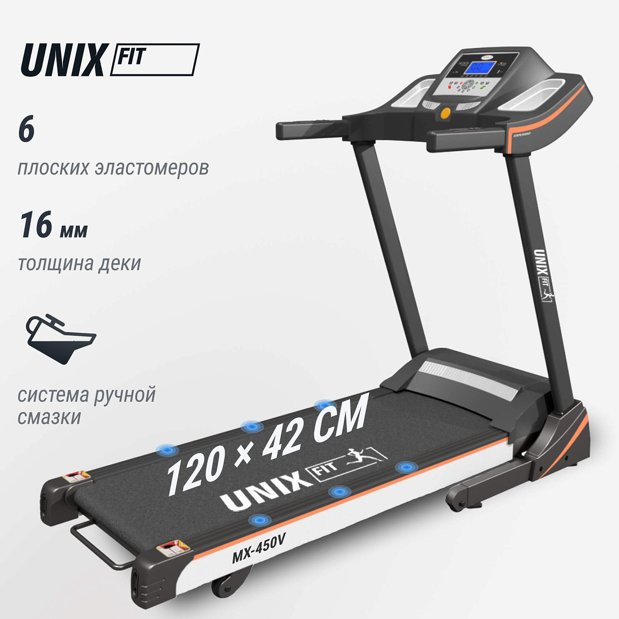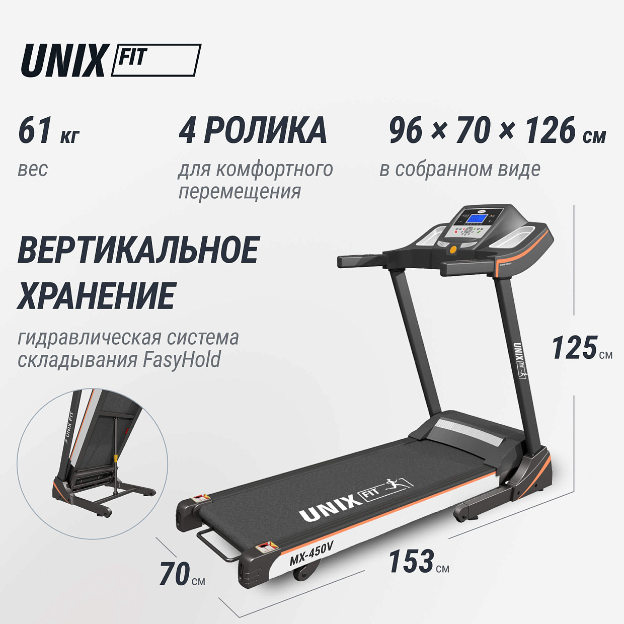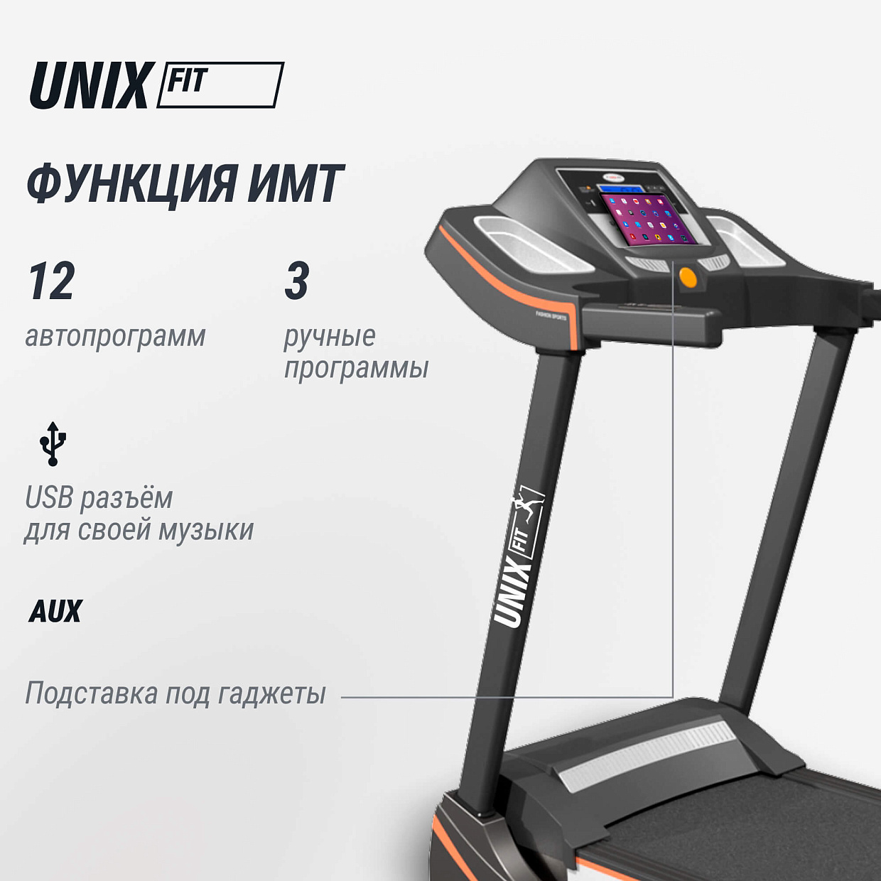 | Измерение пульса | сенсорные датчики на поручнях, возможность подключения беспроводного кардиодатчика UNIXFIT |
