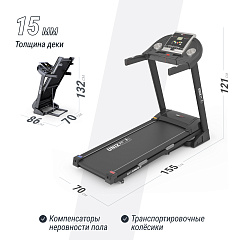 С интуитивно понятным интерфейсом и дисплеем 3,5" LED вы сможете легко отслеживать результаты: пульс, скорость, время, расстояние, уровень наклона, заданная программа и количество сожженных калорий. На панели расположены кнопки быстрого выбора скорости 2 км/ч, 4 км/ч, 6 км/ч, 8 км/ч, 10 км/ч, 12 км/ч для комфортной тренировки. Кроме того, дорожка оснащена 15-ю программами тренировок, которые помогут вам разнообразить занятия и поддерживать мотивацию.