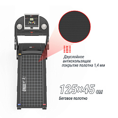 Антискользящее беговое полотно 125 х 45 см и система амортизации электрической дорожки для бега и ходьбы обеспечивают максимальную безопасность во время тренировок. Вы можете сосредоточиться на тренировке, не беспокоясь о травмах. Мягкое покрытие снижает нагрузку на суставы, что особенно важно для людей с проблемами опорно-двигательного аппарата.