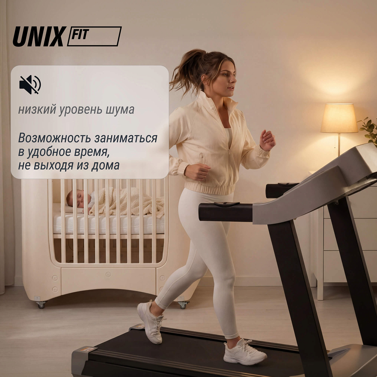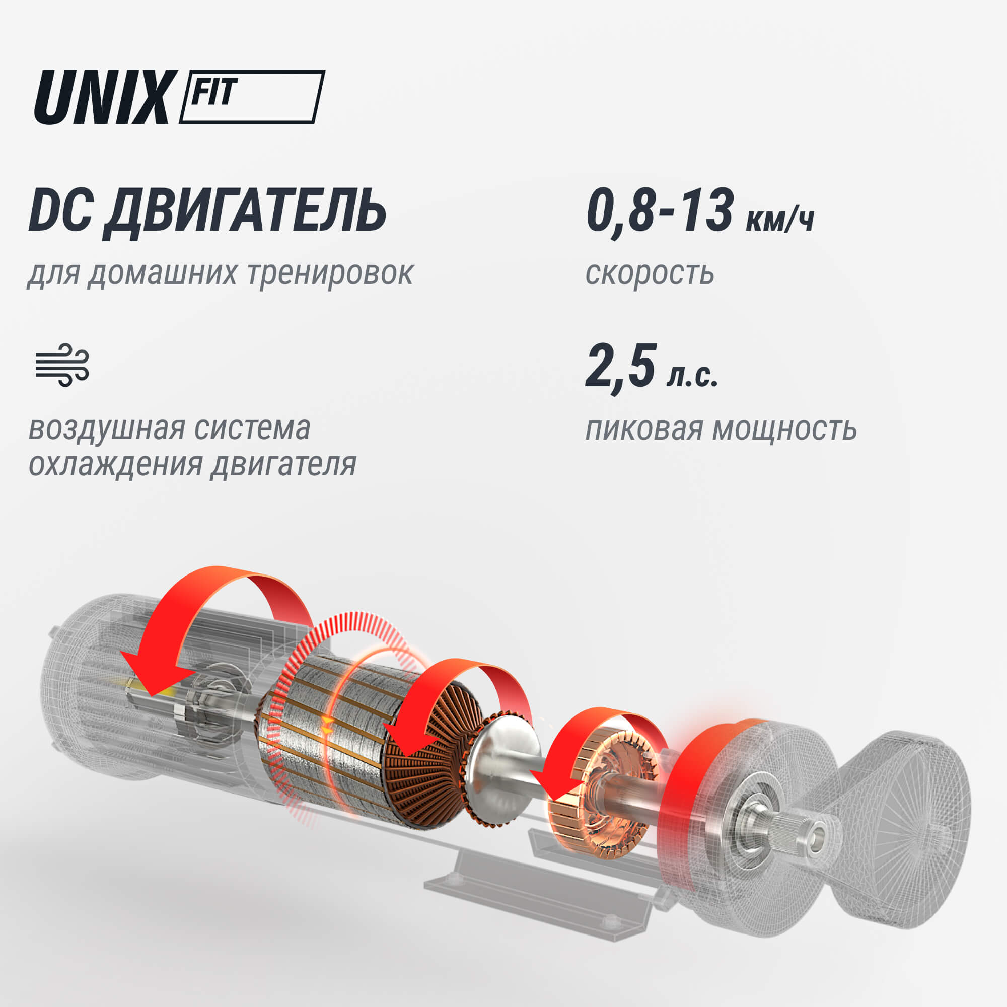 Мощный двигатель с пиковой нагрузкой 2.5 л.с., оснащённый системой воздушного охлаждения и функцией подавления шума SmartTex, гарантирует плавный ход и минимизирует посторонние звуки, позволяя заниматься спортом практически незаметно для окружающих. Максимальная скорость достигает 13 км/ч, что позволит каждому выбрать оптимальный темп для своего уровня подготовки.