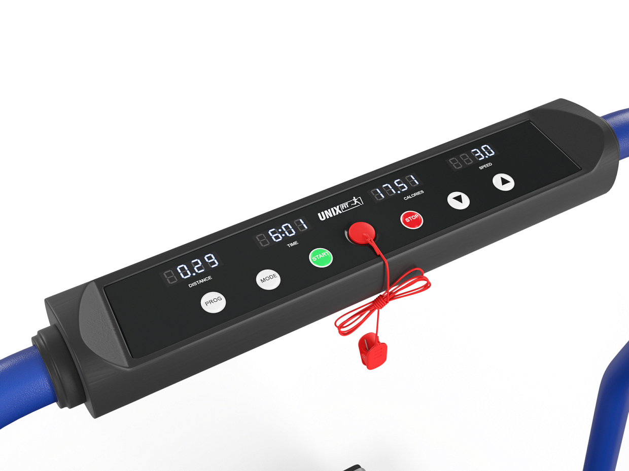 Компактная консоль на складном поручне отображает необходимые во время тренировки параметры: скорость, время, пройденное расстояние и расход калорий.