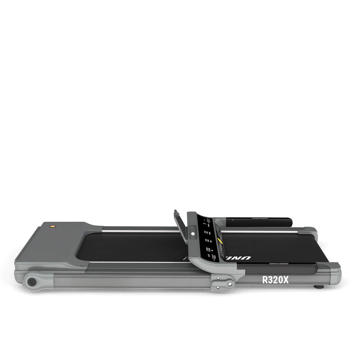 Уникальная система складывания SlimFold превращает UNIX Fit R-320X в компактную беговую дорожку, которую легко убрать под диван или поставить к стене - толщина рамы всего 14 см. Это особенно важно для тех, кто ценит пространство и ищет спортивный тренажер, не занимающий много места. Сенсорная консоль с LED-подсветкой отображает все ключевые параметры: время, скорость, дистанцию, калории и пульс, который измеряется с помощью сенсорных датчиков на поручнях. Для удобства предусмотрена подставка под планшет, а мультимедийная система с двумя мощными динамиками и поддержкой USB и AUX позволяет наслаждаться любимой музыкой во время занятий.