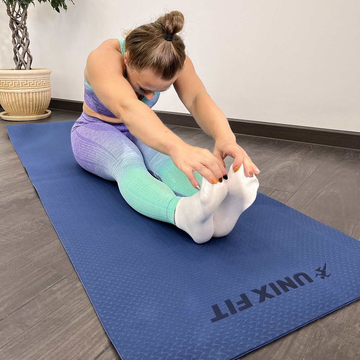 Коврик для фитнеса и йоги UNIX Fit - это ваш надежный спутник в практике, который обеспечивает комфорт, поддержку и безопасность. Наш коврик для йоги создан с заботой о вашей безопасности. Спортивный коврик изготовлен из материала ТПЭ – термопластичного эластомера, который обеспечивает эластичность, упругость и мягкость, и при этом долго сохраняет свою форму. Его структура не позволяет впитывать влагу, а для того, чтобы устранить загрязнения, достаточно протереть их влажной тряпочкой. Фитнес коврик из ТПЭ обеспечивает отличное сцепление с полом и предотвращает скольжение во время практики. Благодаря своей прочности и долговечности, коврик прослужит вам долгие годы, сохраняя свою форму и качество.