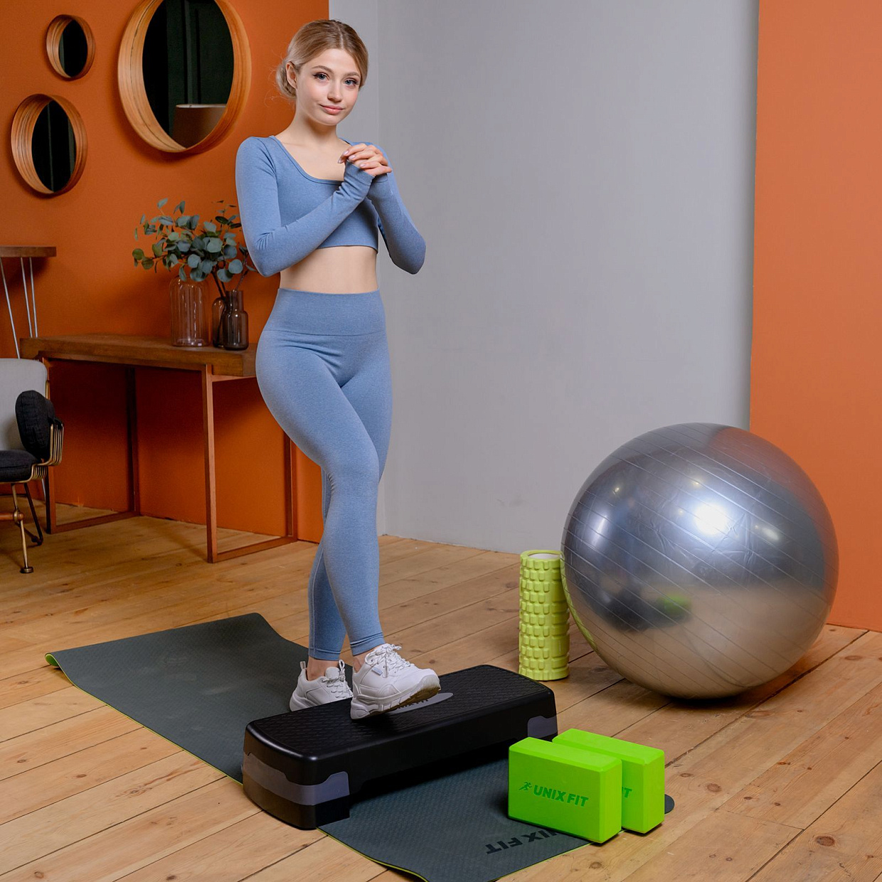 Степ-платформа UNIX Fit для фитнеса 2 уровня, 68 см, серый |