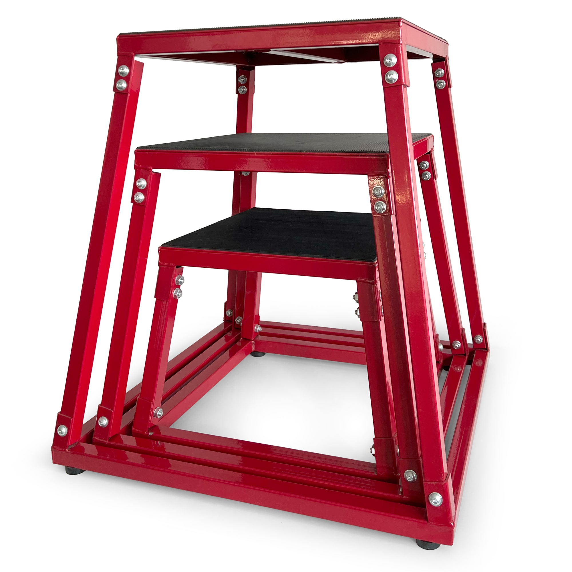 Надежная и прочная конструкция изготовлена из высококачественного металла, который выдерживает даже самые интенсивные тренировки. С помощью боксов вы сможете кратно улучшить выносливость, а также развить мышцы ног, ягодиц и кора. Самый низкий блок можно использовать в качестве степ платформы для фитнеса. Платформы для запрыгивания помогут развить силу, координацию, а также улучшить аэробную выносливость. Тумбу можно использовать для улучшения гибкости, стоя на ней, вы можете тянуться вниз. Также боксы можно использовать для выполнения обычных и обратных отжиманий.