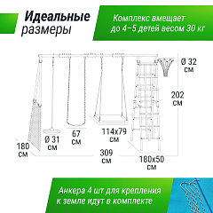 Размер детского комплекса (см) | 309 x 180 x 202 |