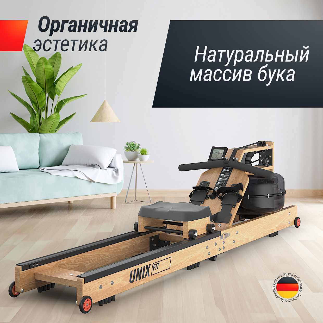 ПолучитьГребной тренажер Wood Rower от бренда UNIX Fit - это надежный тренажер для домашнего использования с уникальным дизайном в скандинавском стиле. Корпус тренажера изготовлен из массива бука. Модель Wood Rower - отличный выбор для людей с хорошим вкусом и ценителей высококачественного экологичного материала.