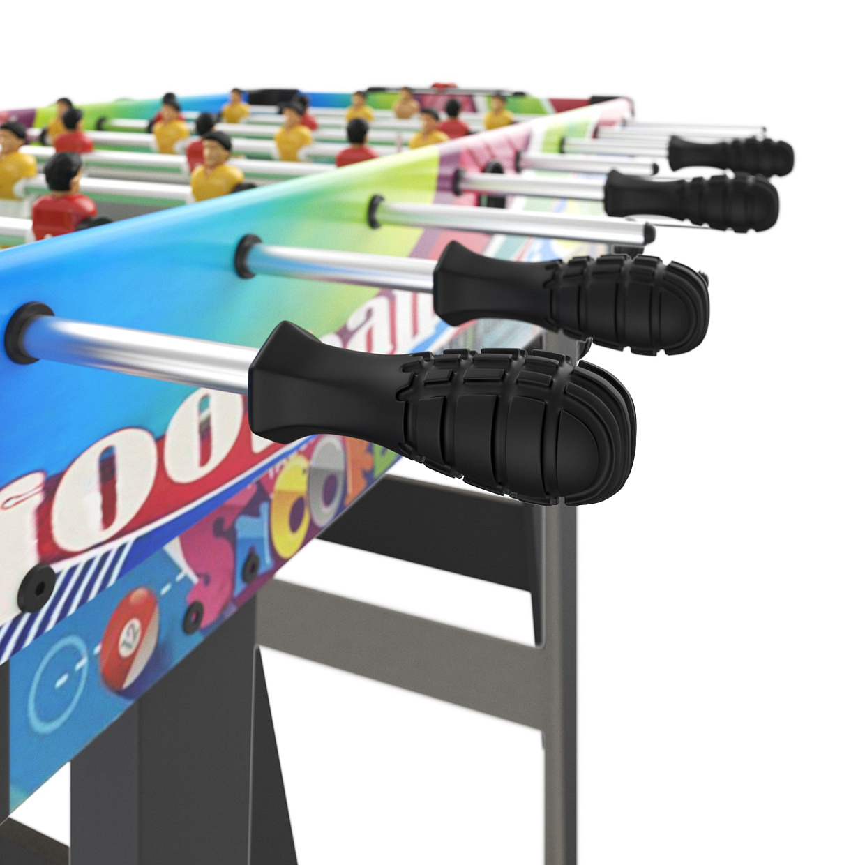 Одно из полей – поле для настольного футбола. Знаменитой и любимой игрой многими детьми и взрослыми. Кикер оснащен плавными и точными игровыми фигурками, которые позволяют вам контролировать мяч и создавать захватывающие комбинации. Высота игроков 11 см, мяч 3,5 см. Все фигурки изготовлены из пластика.