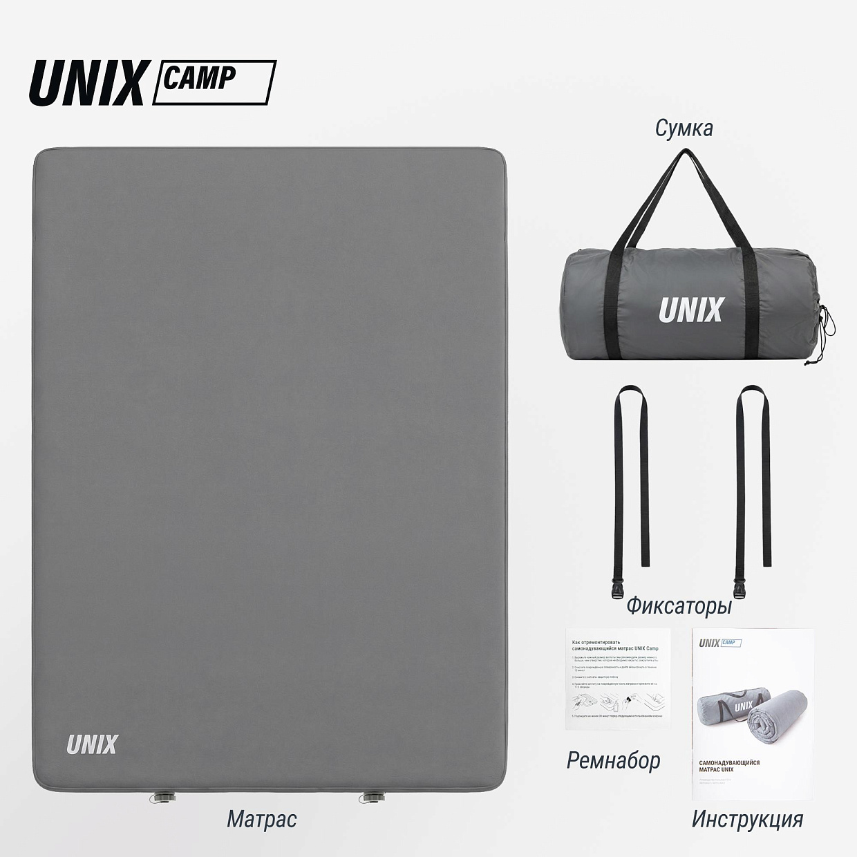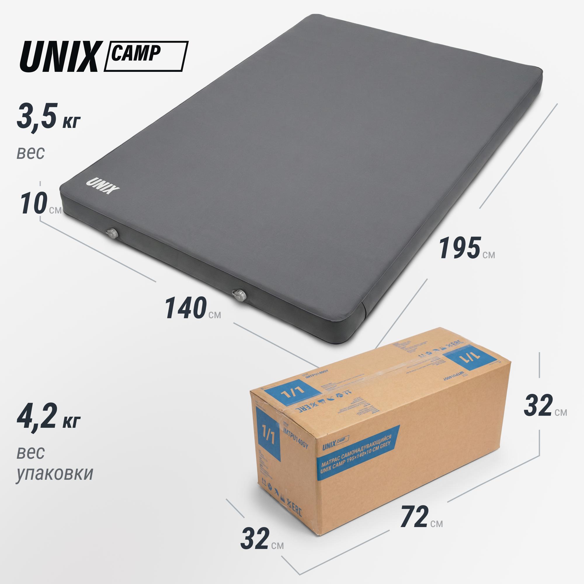 Матрас самонадувающийся UNIX Camp 195х140х10 см серый