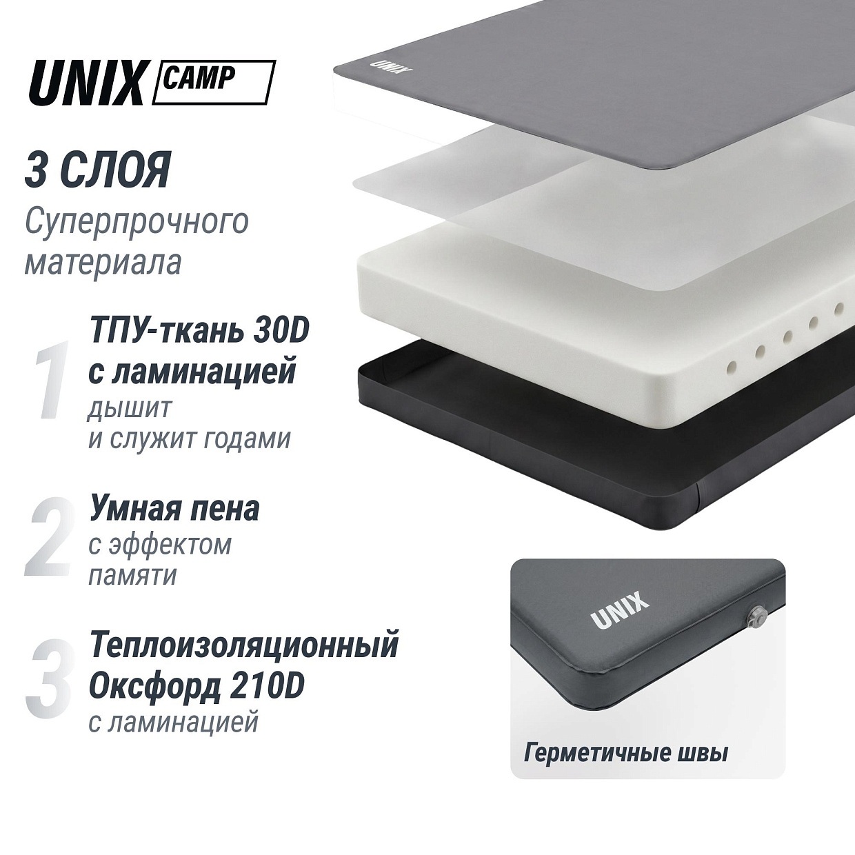 Надувной туристический матрас — это многослойная структура: