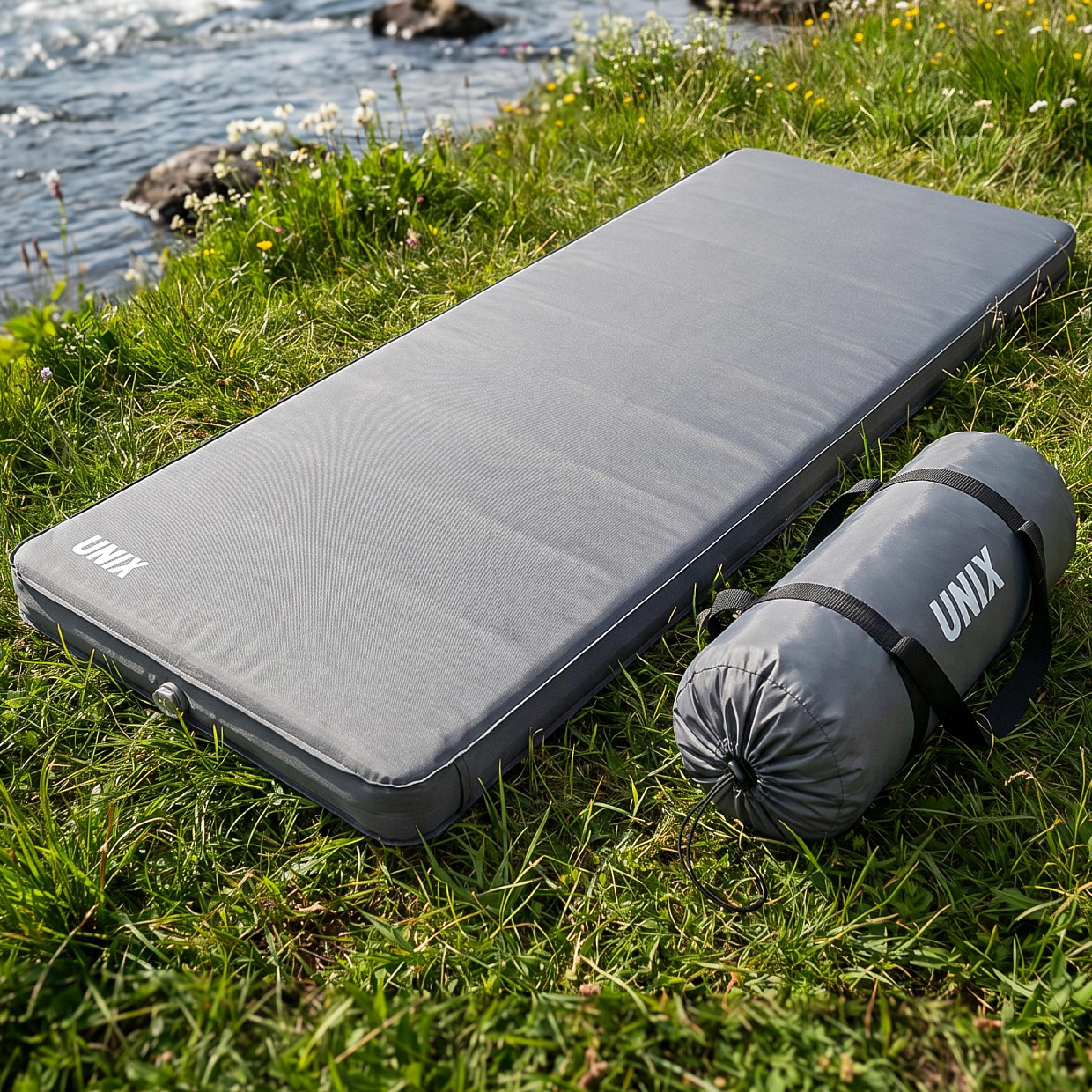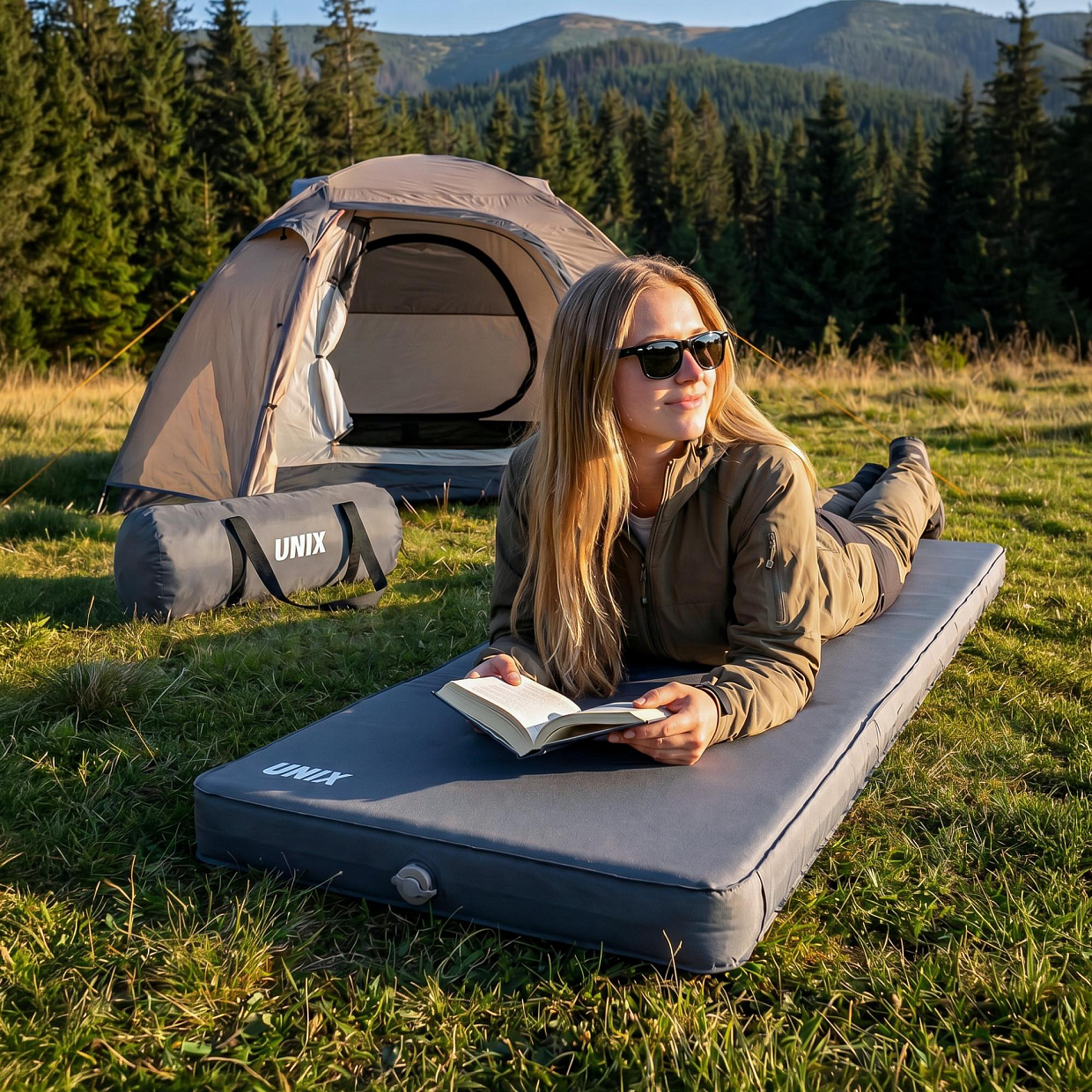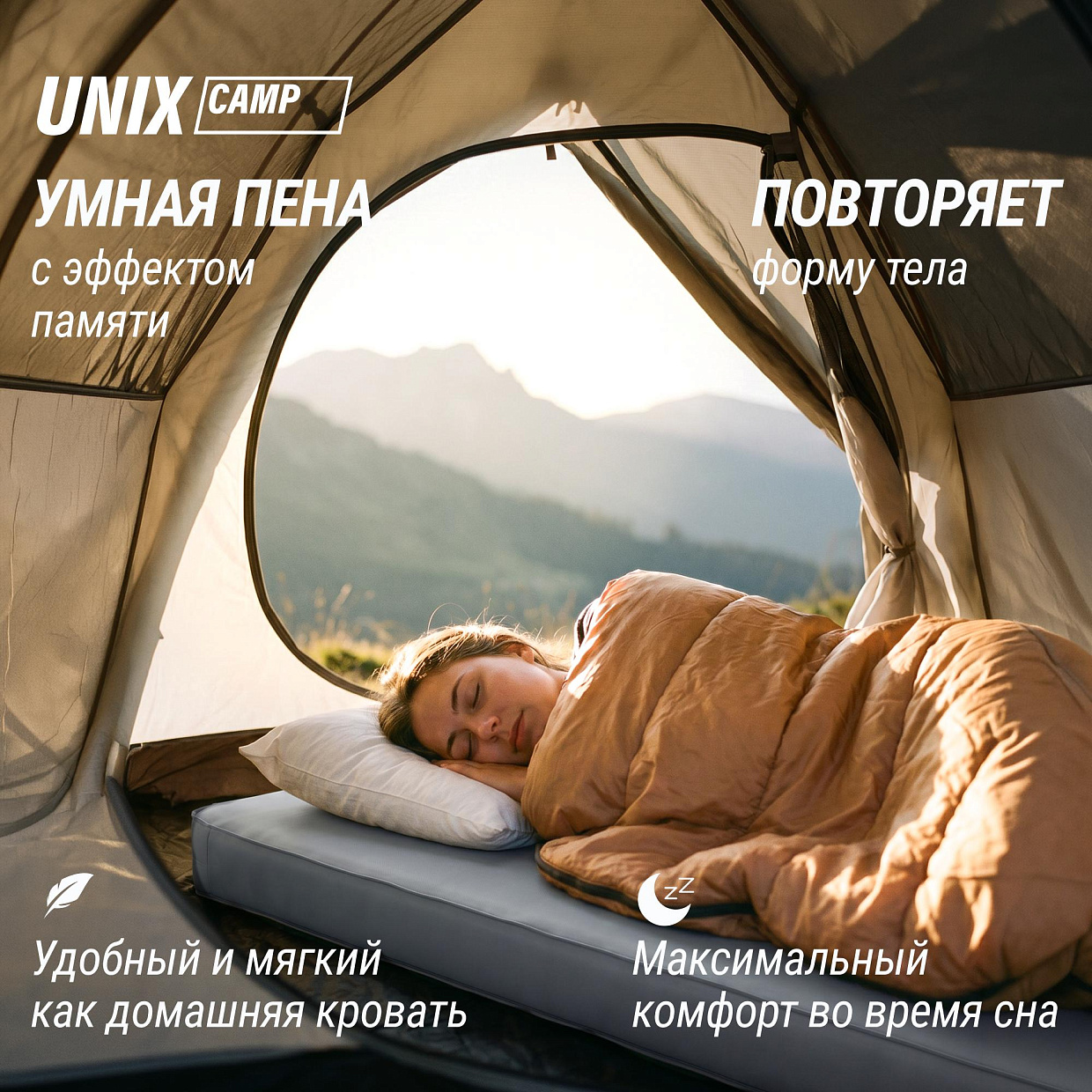 Туристический матрас UNIX Camp 195×80×10 см — одноместное всесезонное спальное место для любых условий: на кемпинге, под открытым небом, в автомобиле или на даче. Допустимая нагрузка — 150 кг.
