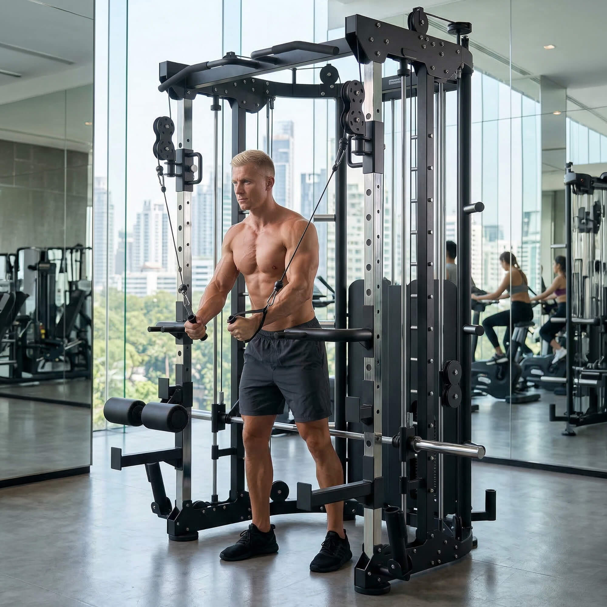 Этот спортивный тренажёр для ног, рук, спины, пресса, груди, ягодиц и бедер способен заменить целый ряд отдельных установок, экономя пространство вашего спорт-клуба и предлагая больше возможностей для занятий ваших клиентов.