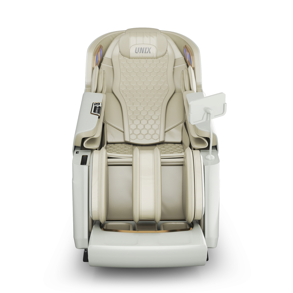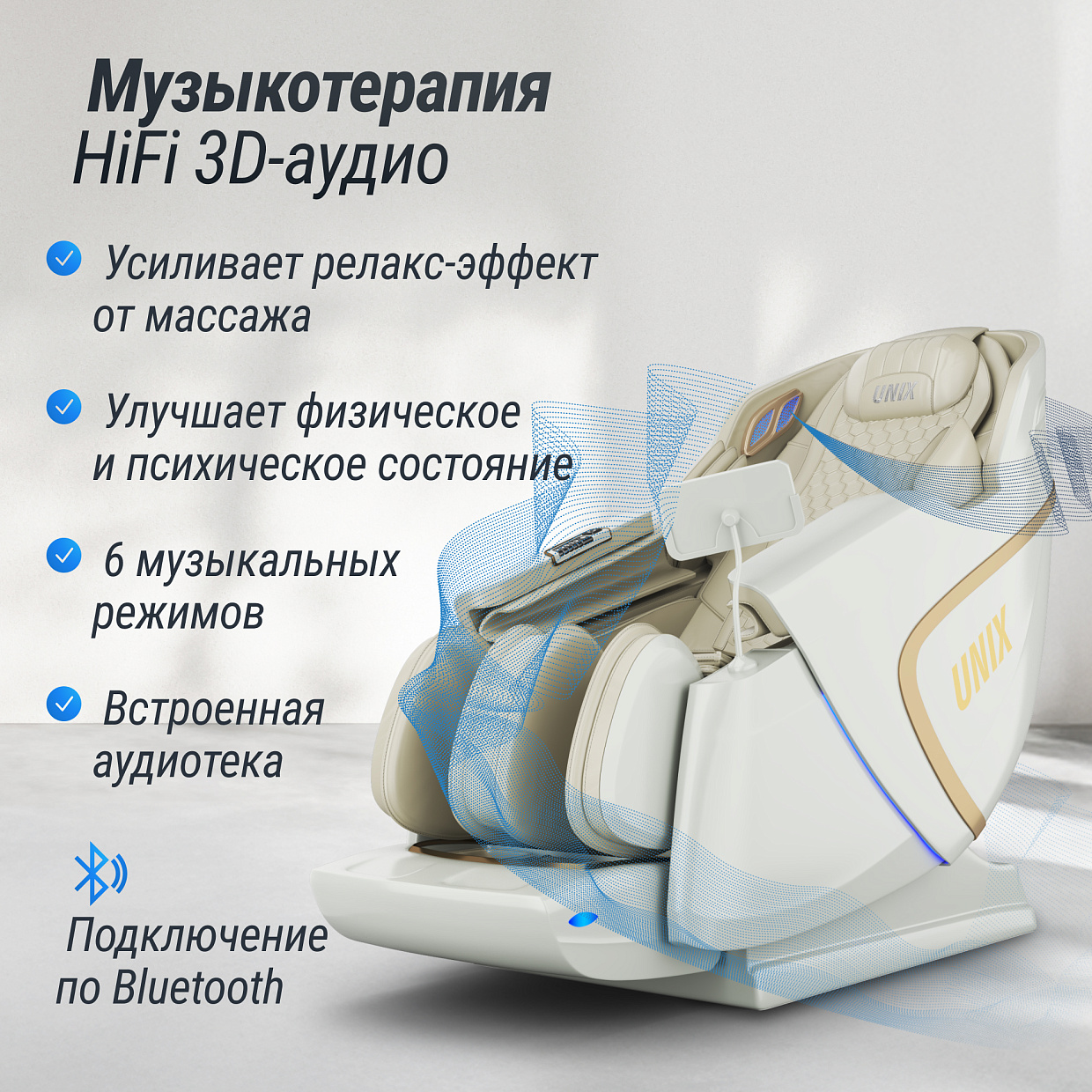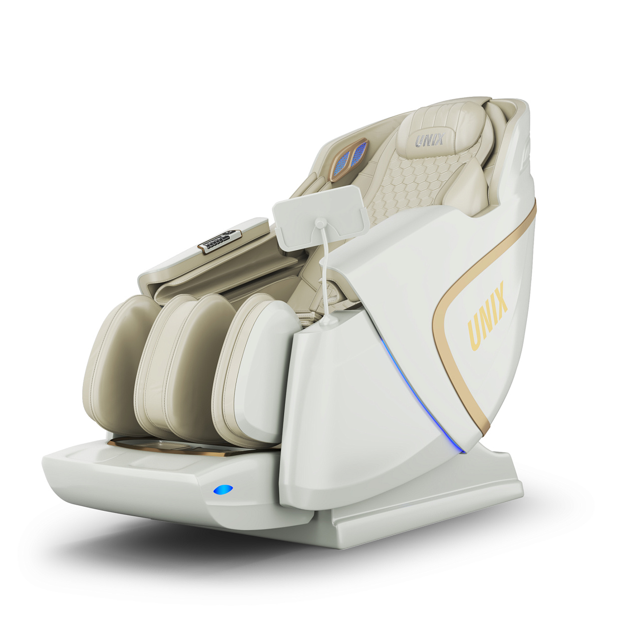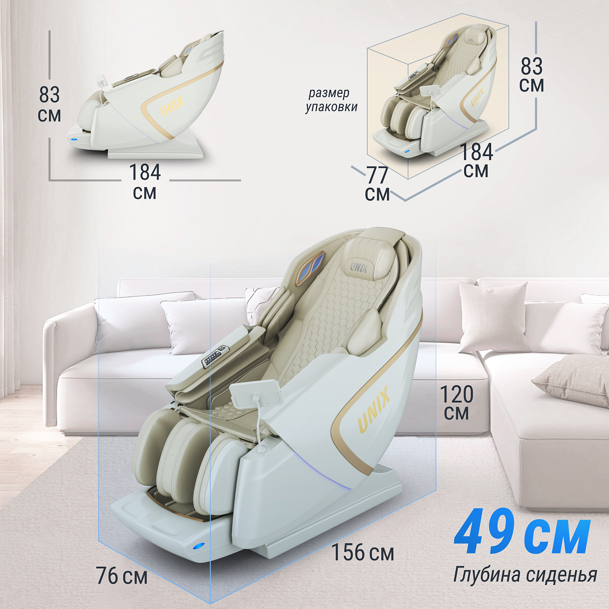 ПолучитьОткройте для себя новое измерение комфорта и заботы о здоровье с революционным массажным креслом UNIX Aura, оборудованным передовыми технологиями 4D манипулятора и датчиками анализа здоровья. Это не просто массажное кресло — это ваш личный терапевт, который всегда готов прийти на помощь. Каркас спинки в лежачем положении выполнен по технологии скользящего рельса, что позволяет разместить изделие всего в 10 см от стены, максимально экономя пространство.