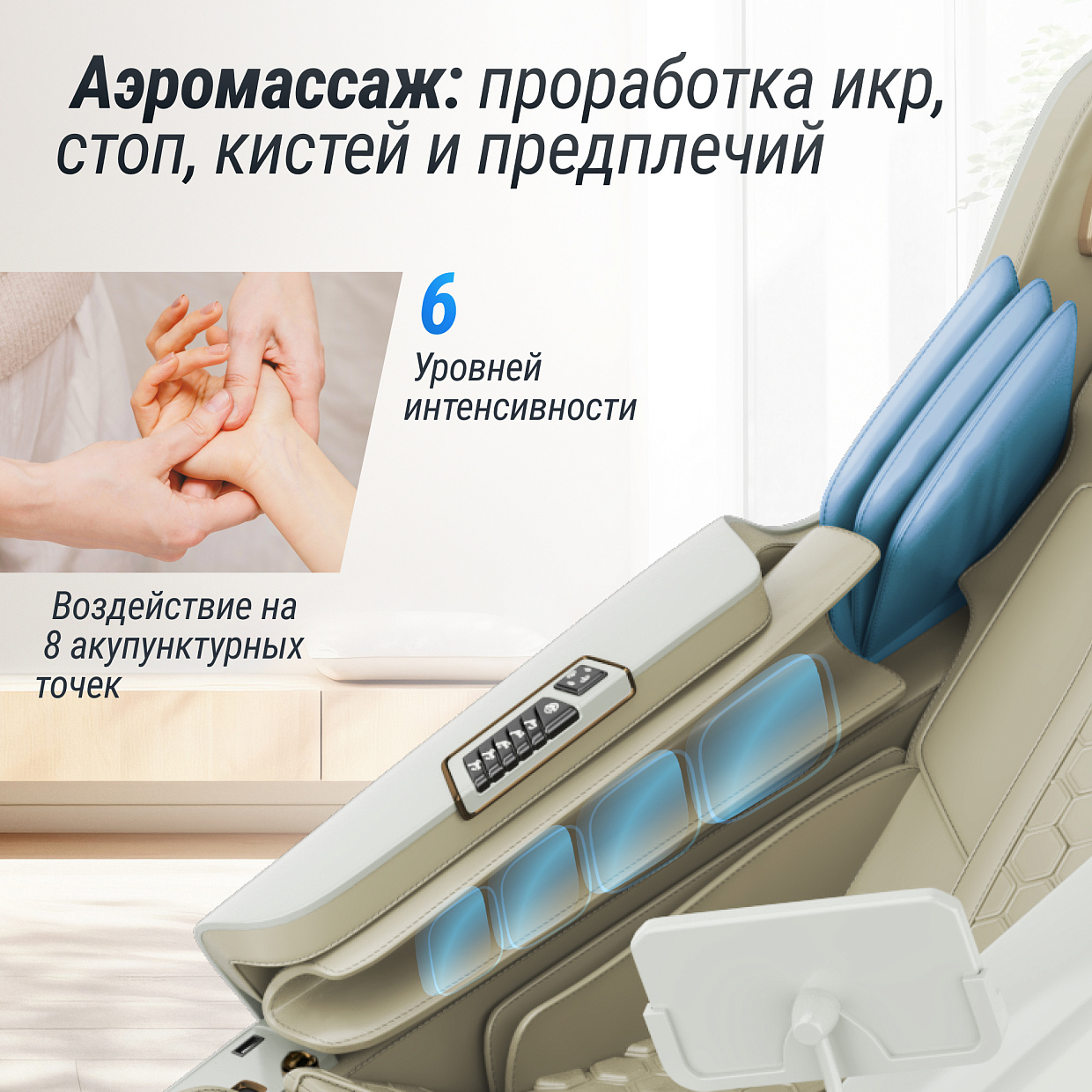 Аэромассаж | 6 элементов аэромассажа икр, рук, ладоней, кистей / 6 скоростей давления аэромассажа / стоп / предплечий |