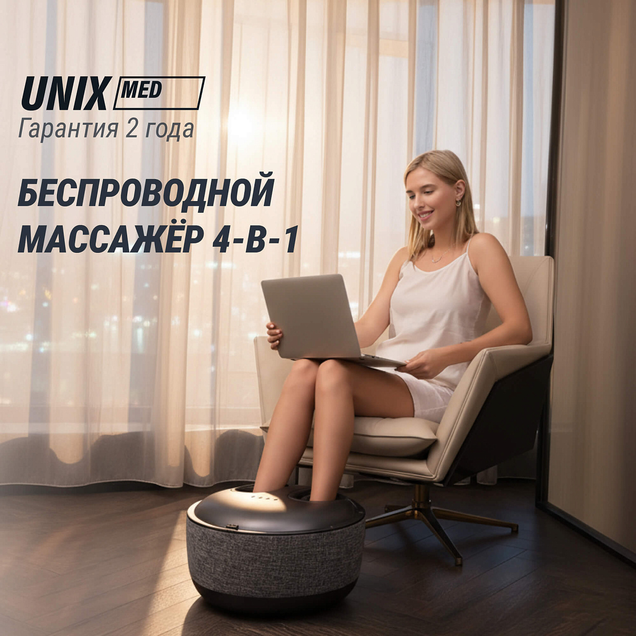 Массажер для ног и стоп предлагает различные программы и уровни интенсивности, что позволяет вам настроить массаж под свои предпочтения. Неважно, хотите ли вы легкий расслабляющий массаж или более глубокую проработку — наш массажер удовлетворит все ваши запросы. А возможность подогрева подарит дополнительный комфорт во время массажа. Сеансы массажа с UNIX Med Secret Pouf способствуют ускорению процесса восстановления после растяжений и травм, а также предупреждает возникновение варикозного расширения вен нижних конечностей.