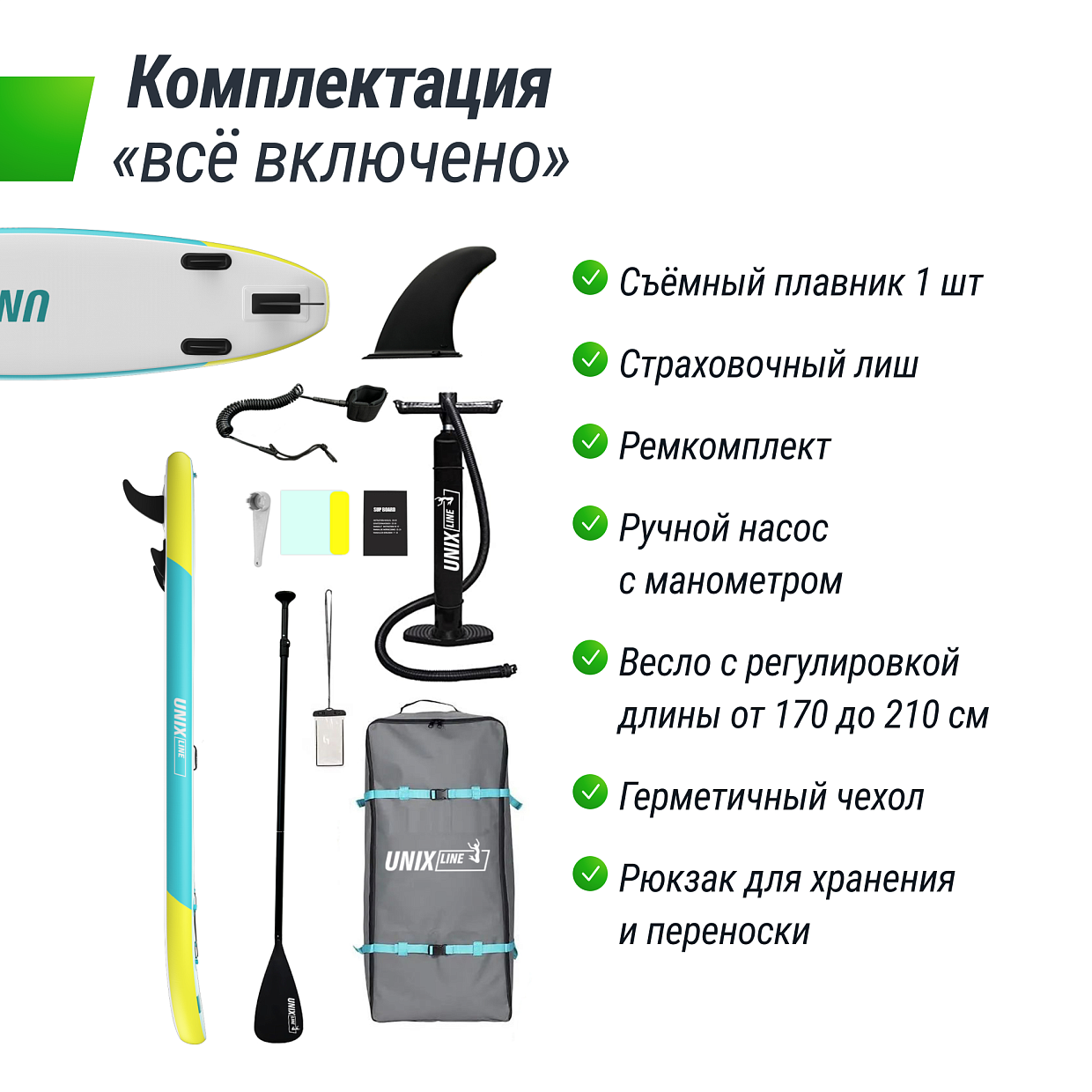 Почувствуйте себя свободным с безопасным и стильным SUP-бордом от UNIX Line, наслаждаясь кристально чистой водой и живописными пейзажами!