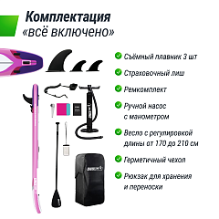 Такие полезные детали сапа как ремешок для хранения, ручка для переноски, съемный центральный плавник и заглушка для поводка обеспечат максимальный комфорт и безопасность на воде. Ремонтный набор в комплекте позволит устранить простые неисправности самостоятельно.