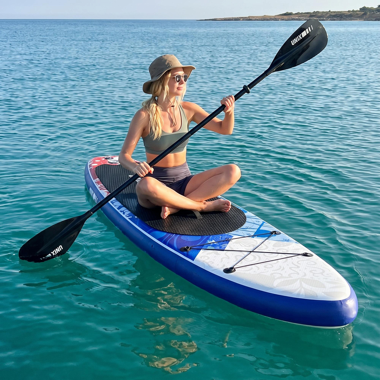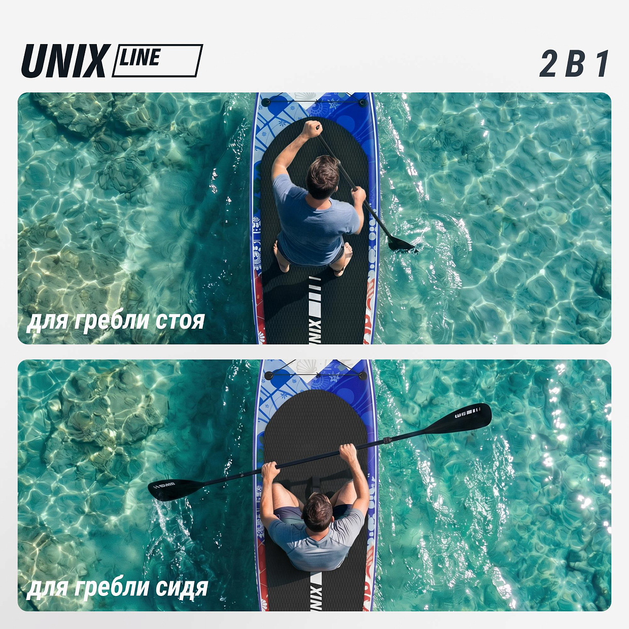 Почувствуйте себя свободным с безопасным и стильным SUP-бордом от UNIX Line, наслаждаясь кристально чистой водой и живописными пейзажами!