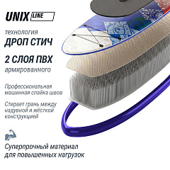 SUP-борд устойчив на воде благодаря гидродинамическим свойствам. Надувная, широкая конструкция с заостренным носом способствует быстрому, легкому ходу по прямой траектории. Модель с повышенной грузоподъемностью рассчитана на максимальный вес в 200 килограммов и подойдет для всей семьи. САП-доски UNIX оснащены антискользящим покрытием и обладают повышенными износостойкими и водоотталкивающим свойствами. Это покрытие не боится воздействия агрессивных сред, обладает прекрасным сцеплением даже при попадании большого количества влаги и служит дополнительной защитой поверхности.