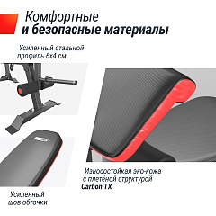 Мягкая обивка скамьи под штангу из износостойкой эко-кожи с плетёной структурой Carbon TX обеспечивает максимальный комфорт во время занятий, а усиленный шов обточки предупредит появление разрывов на ткани. Эргономичный дизайн позволяет сосредоточиться на выполнении упражнений, не отвлекаясь на дискомфорт.