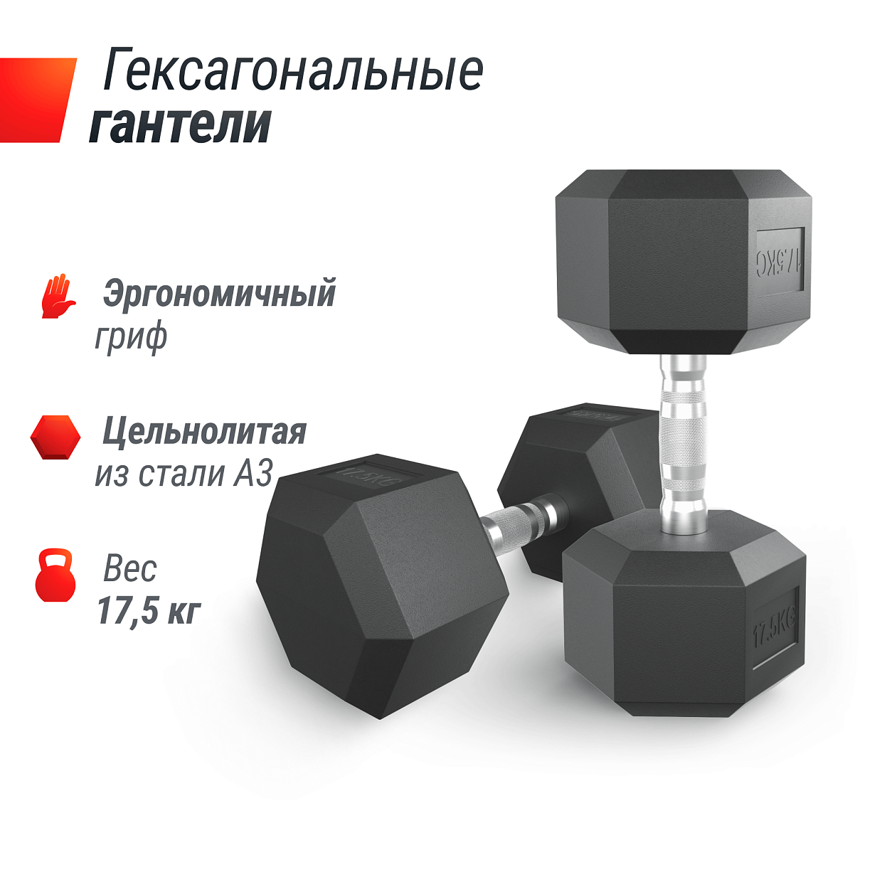 Гантель гексагональная UNIX Fit обрезиненная 17,5 кг / шт. |