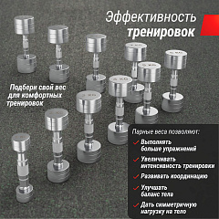 Универсальность использования делает гантель ценным приобретением для любого спортсмена. Этот спортивный товар подходит для широкого спектра упражнений (в т.ч. кроссфита), направленных на укрепление и развитие различных групп мышц. С его помощью можно эффективно прорабатывать мышцы рук, плеч, груди и спины, а также укреплять пресс и ноги. Универсальные упражнения с использованием гантелей помогают развивать силу, выносливость и способствуют набору мышечной массы.