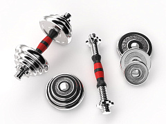 ПолучитьНабор состоит из двух гантелей общим весом 20 кг. Удобная разборная конструкция позволяет регулировать вес гантелей в процессе занятий, а эргономичная рукоятка сделает тренировку комфортной.