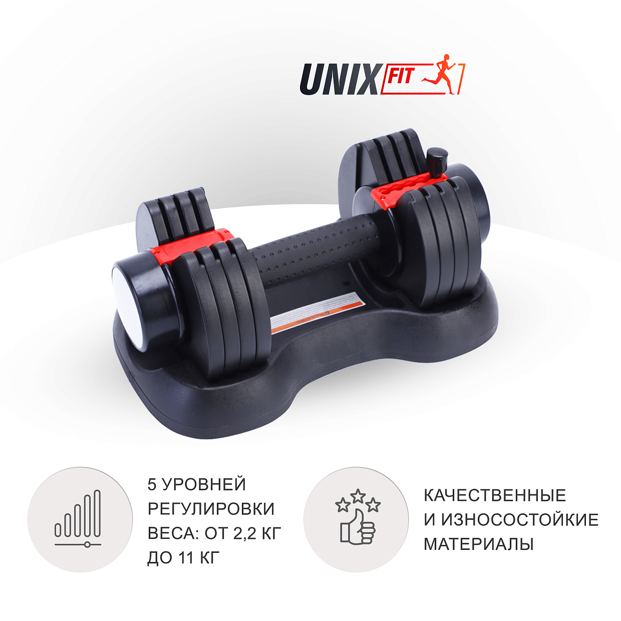 Гантель со ступенчатой регулировкой UNIX Fit 11 кг черная |