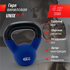 Гиря UNIX Fit виниловая 4 кг Blue |