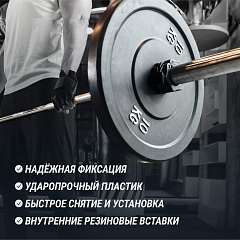 Особенности | подходят для гантелей, штанг и грифов Ø50 мм, ударопрочный пластик, надежная фиксация, внутренние резиновые вставки для надежной фиксации |