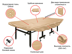 Чехол не предназначен для защиты от дождя и влаги теннисных столов для помещений, изготовленных из ДСП, ЛДСП, МДФ и других подобных материалов.