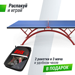 В подарок к столу идет набор для игры: 2 ракетки, 3 шарика в сумке.