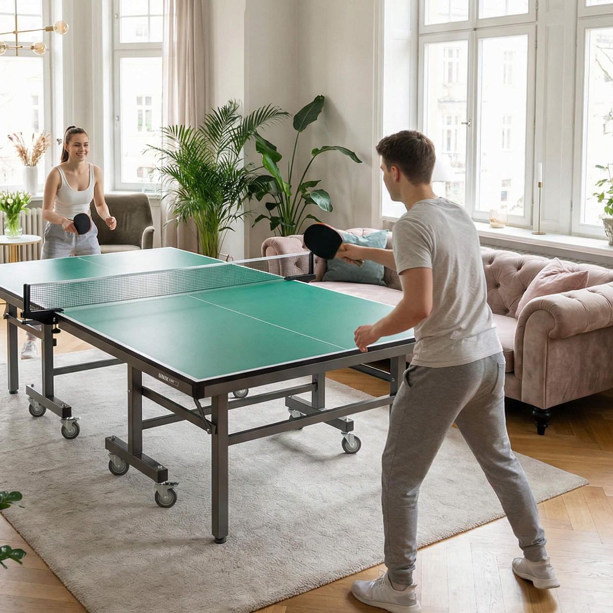 Профессиональный теннисный стол UNIX Line обеспечивает отличное качество, комфорт и долговечность для множества часов активного отдыха и развлечения.