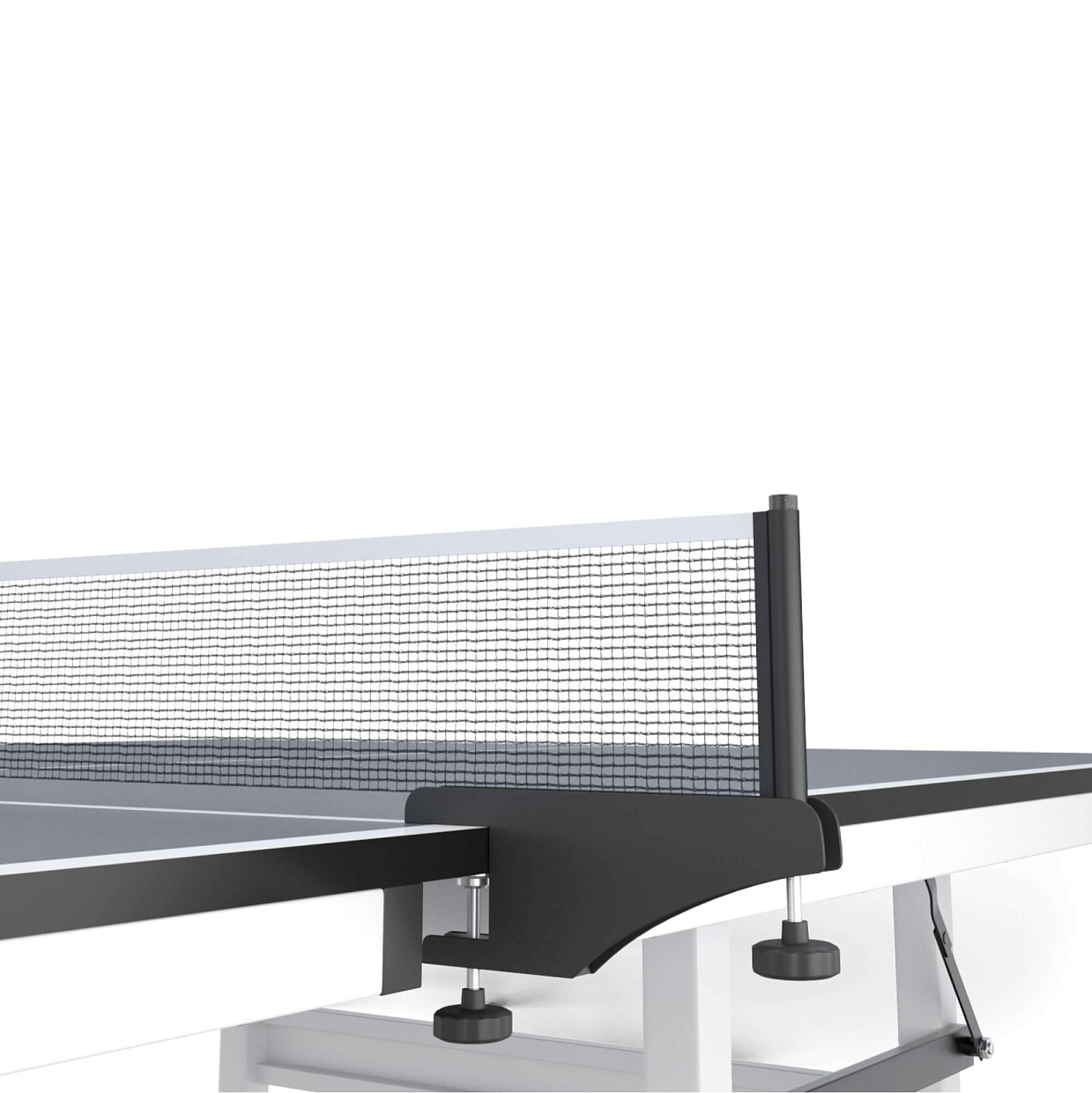В комплекте к столу поставляется сетка из нейлона с надежными винтовыми фиксаторами и набор для игры: 2 ракетки, 3 шарика в сумке.
