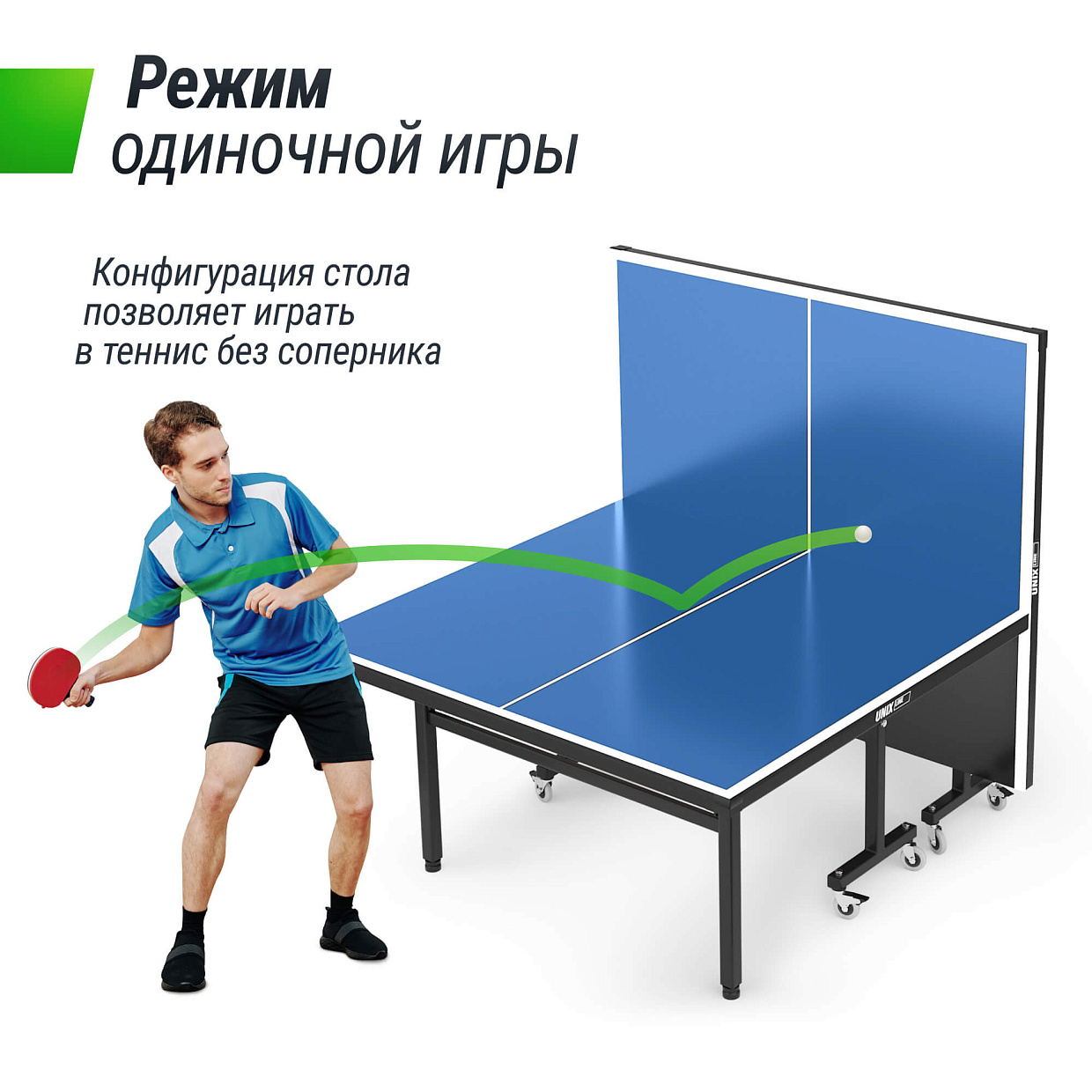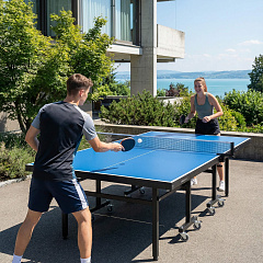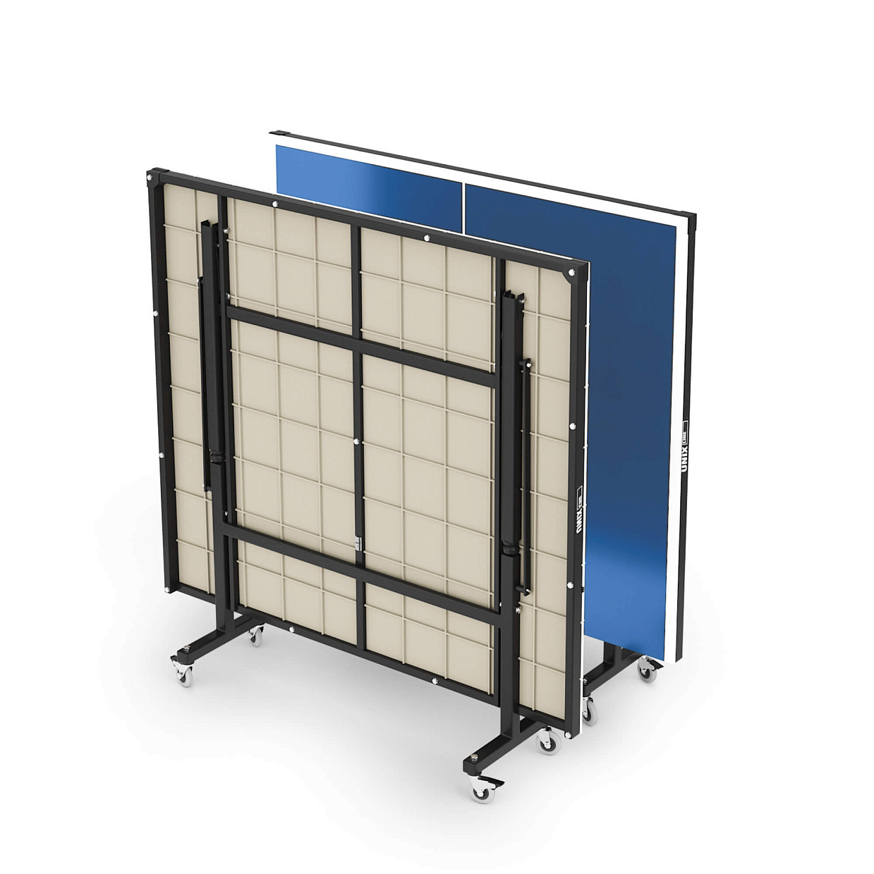 Для комфортного перемещения теннисный стол имеет 8 прорезиненных колес Ø75 мм с подшипниками. Все колеса маневровые и обладают высокой износостойкостью, 4 из них оборудованы фиксаторами.
