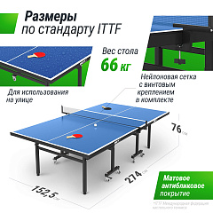 В рабочем состоянии, диаметр х высота | 274 х 152,5 х 76 см (стандарт ITTF) |