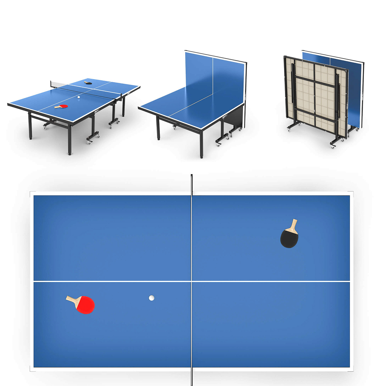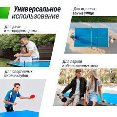 Сетка из нейлона с надежными фиксаторами, а также набор для игры в настольный теннис: 2 ракетки, 3 шарика в сумке, поставляются в комплекте со столом.